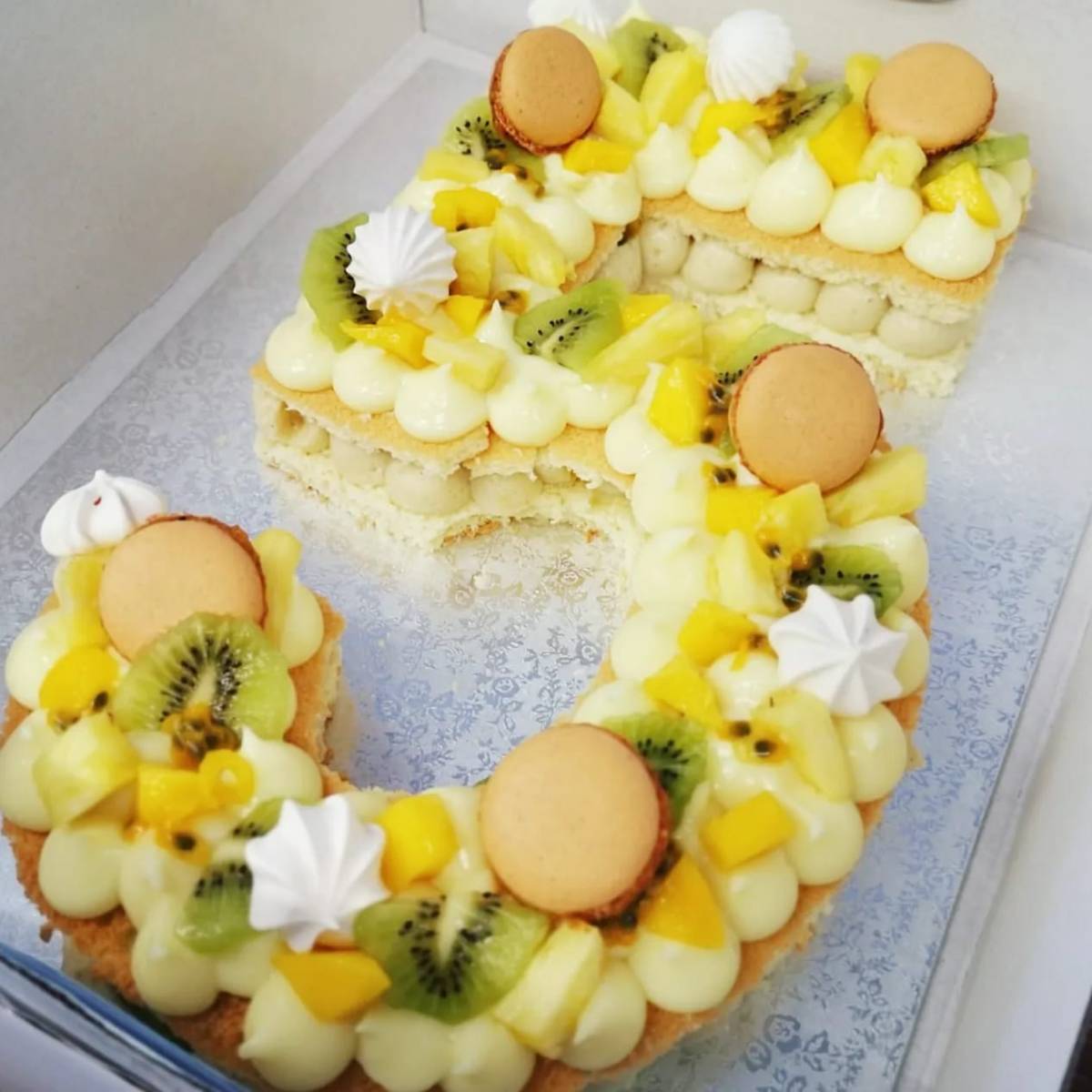 Pour célébrer les 5 ans d'un jeune garçon à Flins (77), nous avons réalisé un number cake sur-mesure, aux saveurs délicieuses de vanille et de fruits frais.